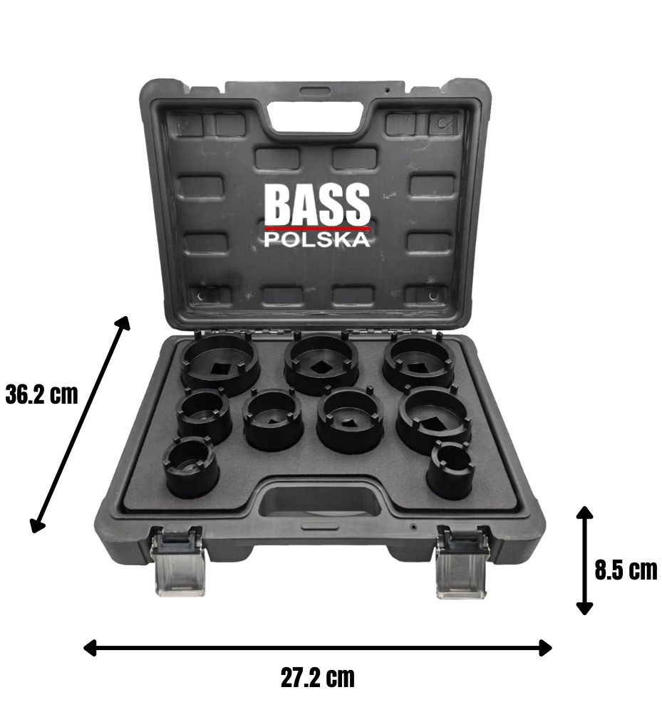 Zestaw nasadek udarowych zaprojektowany do profesjonalnego odkręcania i dokręcania nakrętek rowkowych podczas montażu i demontażu łożysk oraz kół zębatych na wałach, tulejach zaciskowych i ciągnących. Idealny do zastosowania w pojazdach ciężarowych, maszynach budowlanych oraz innych wymagających środowiskach przemysłowych.