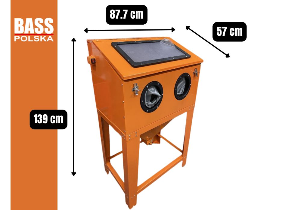 Wymiary piaskarki: 87.7 x 57 x 139 cm
